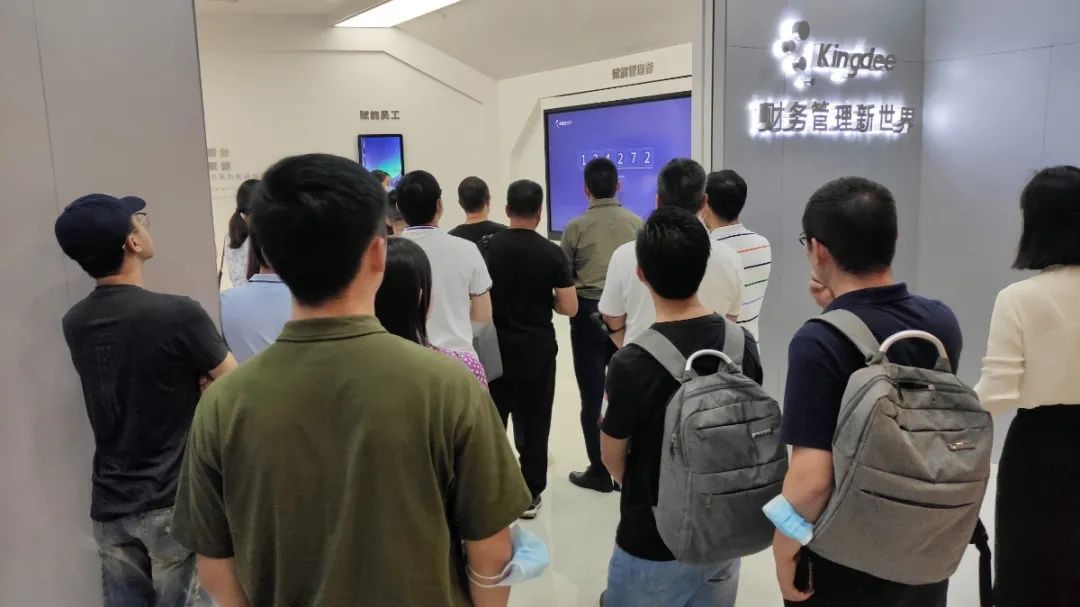 大家随着讲解员参观了充满现代感的金蝶体验馆,深入了解了金蝶的发展历程以及数字化转型的实践成果,并参观了金蝶财务新世界展馆,通过各种看板数据亲眼见证了在使用者的角度下金蝶能将财务工作变得多么的简单快捷。