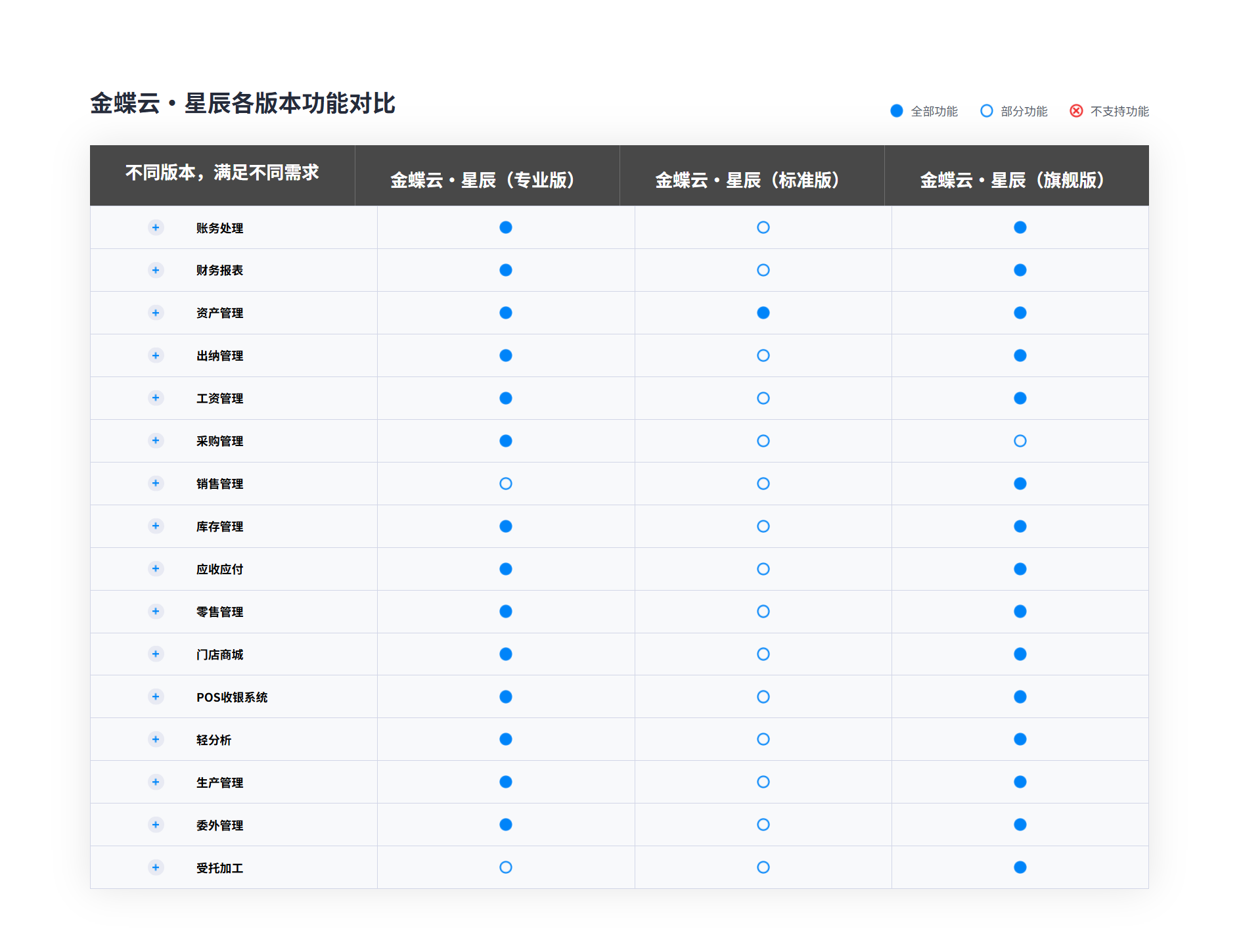 金蝶云·星辰基于金蝶云·苍穹云原生PaaS平台构建,聚焦小型企业在线经营和数字化管理,提供财务云、税务云、进销存云、零售云、订货商城等SaaS服务,支持企业拓客开源、智能管理、实时决策; 金蝶云·星辰还提供轻量级PaaS平台和全面的API接口,广泛连接生态伙伴,为小微企业提供一站式服务,助力企业快速成长