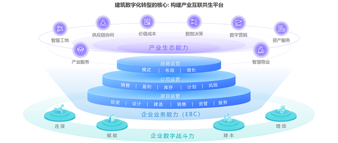 建筑企业数字化解决方案以项目管理、企业经营管理、供应链管理为理念支撑,提供项目从经营与投标、工程设计到竣工管理为一体的全生命周期解决方案,实现建筑企业人财税一体化管控,全面提升工程项目经营管控水平