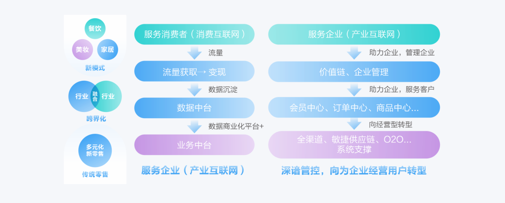 零售行业企业需要围绕消费者,通过全域营销体系来吸引、转化、培育、沉淀、裂变消费者,打造营销一体化;通过全域渠道体系来实现全网订单、全网配送、全网预测、全网供给,通过创造消费的极致体验,打造供需一体化;通过智慧供应来实现端到端的智能高效供应体系,形成供求一体化。通过全域营销、全域渠道、智慧供应强化企业与客户之间的关系,提升商品与现金的周转